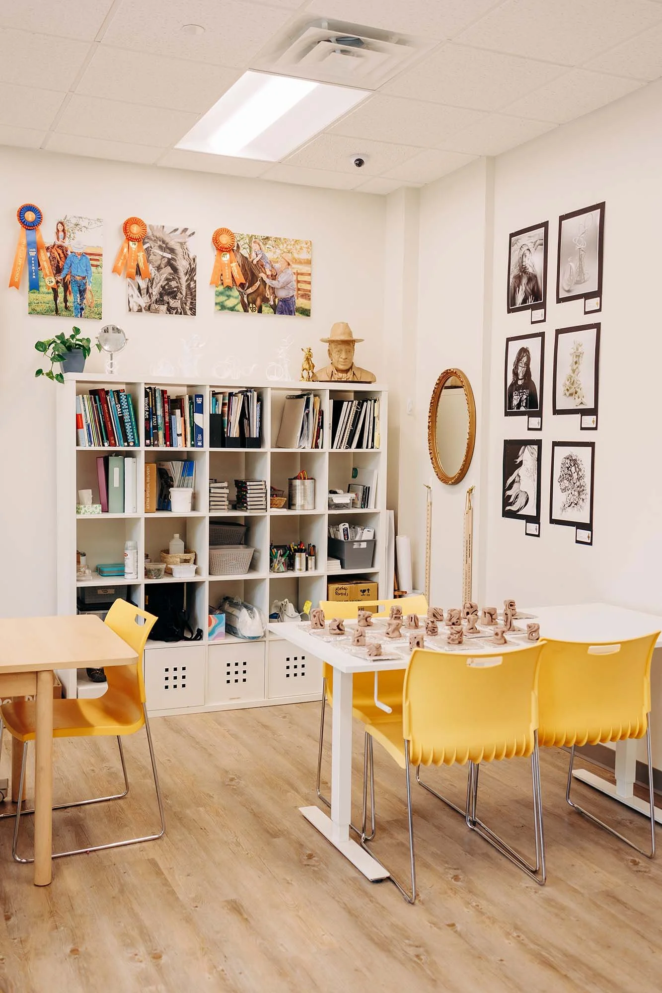 Much care and consideration is placed into every space the children occupy. In the Reggio Emilia philosophy of learning, the environment is considered the 3rd teacher. This means the physical space around the children should look inviting, inspire curiosity, challenge their thinking, and reflect their ongoing learning processes. Each classroom has a mini-atelier with various loose parts and quality art materials such as paint, glue, markers, clay, play dough, and various other art materials that are readily available to the children . By allowing children full access to materials, we are conveying to the children that they are trustworthy and capable. Reggio children do not clamor when they see a light table full of rocks, pebbles, shells, paints, glue, markers and paper.